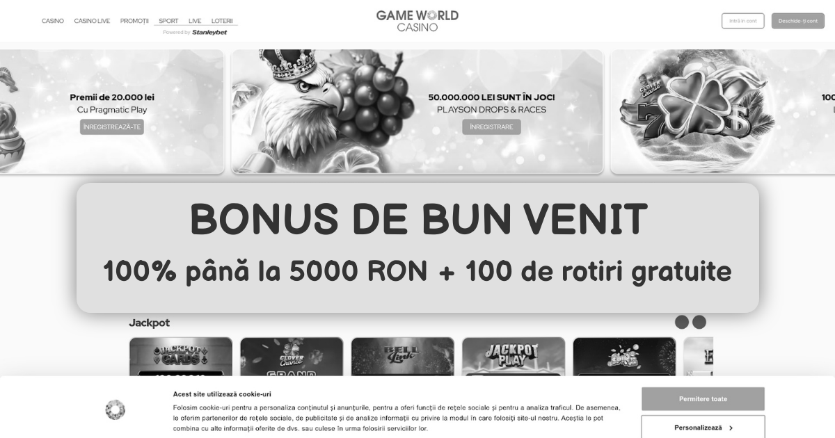 Gameworld Casino vă întâmpină cu brațele deschise în lumea divertismentului online de top din România. Profitați de bonusul de bun venit generos, 100% până la 1500 RON, cu cerințe de pariere accesibile de doar 35x, pentru a începe aventura voastră cu încredere. Licențiat de Oficiul Național pentru Jocuri de Noroc (ONJN), garantăm un mediu sigur și echitabil pentru toți jucătorii noștri. Printre avantajele cheie se numără retragerile rapide în mai puțin de 24 de ore, suport clienți 24/7 în limba română și o interfață intuitivă. Explorați o gamă vastă de jocuri, de la păcănele cu jackpot captivante la ruleta live imersivă și jocuri de masă clasice precum blackjack și poker. Colaborăm cu furnizori de renume precum NetEnt, Pragmatic Play și Evolution Gaming, pentru grafică de calitate și acțiune non-stop. Versiunea mobilă optimizată vă permite să jucați oriunde, pe telefon sau tabletă, fără descărcări. Depuneți și retrageți fonduri ușor prin carduri Visa/Mastercard, portofele electronice ca Skrill și Neteller sau transfer bancar, toate în RON pentru comoditate maximă. Aici, la Gameworld Casino, bonus cazino online și păcănele cu plată rapidă sunt doar începutul unei experiențe câștigătoare adaptate perfect pentru România.